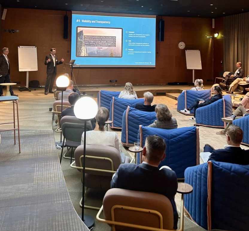 Speaking about the importance of communication in complex environments at Nordic Interim Finland, 2024